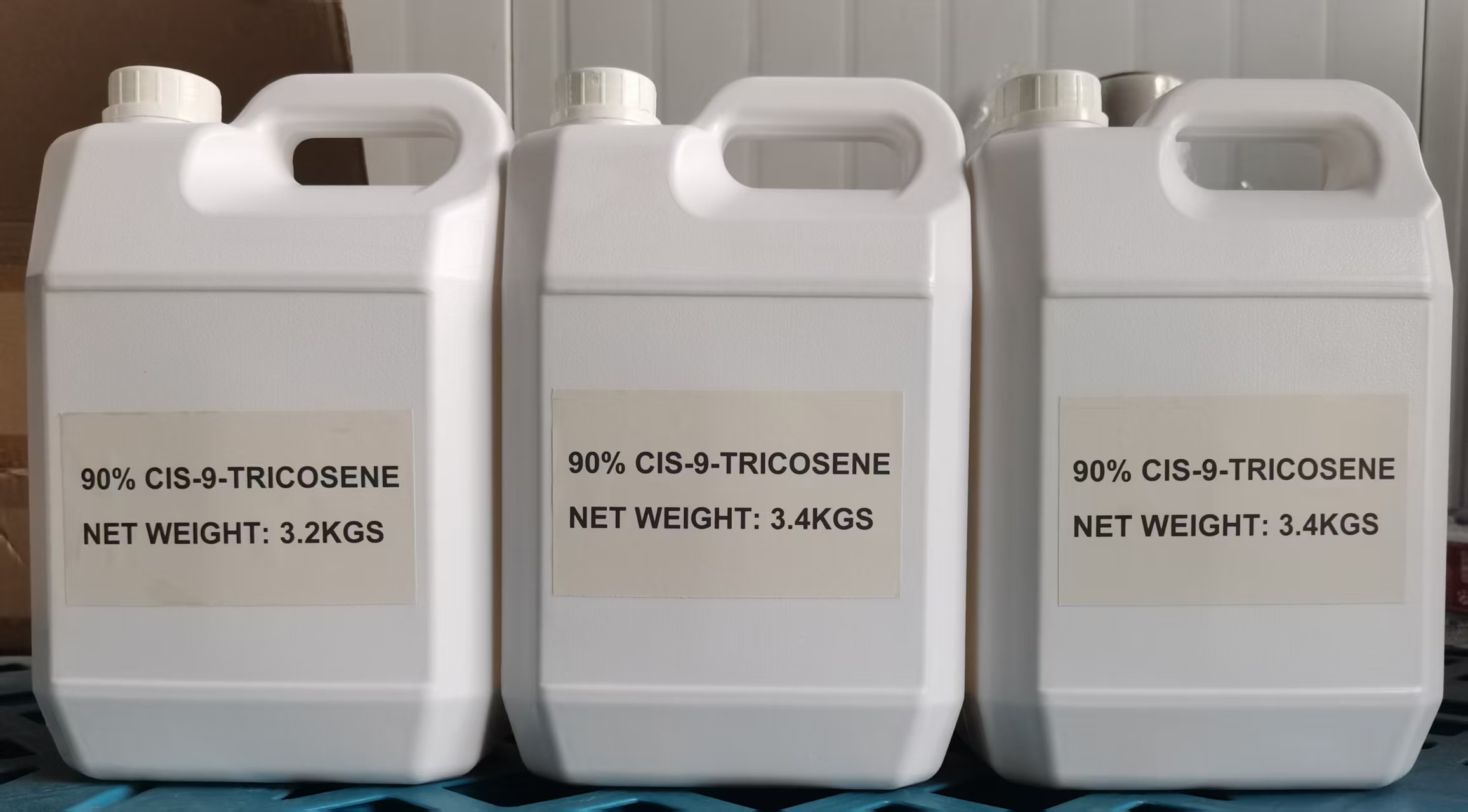 Z-9-Tricosene is een geslachtsferomoon dat wordt geproduceerd door vrouwelijke huisvliegen (Musca domestica) om mannetjes aan te trekken.Dit product is een insectenferomoon gesynthetiseerd door ons bedrijf met behulp van een chemische synthese methodeHet heeft een goed aantrekkelijk effect op kakkerlakken en vliegen. Het kan de insecticideffectiviteit van insecticiden verbeteren wanneer het in combinatie met insecticiden wordt gebruikt.Dit product wordt alleen gebruikt als aantrekkend middel in insecticiden.
